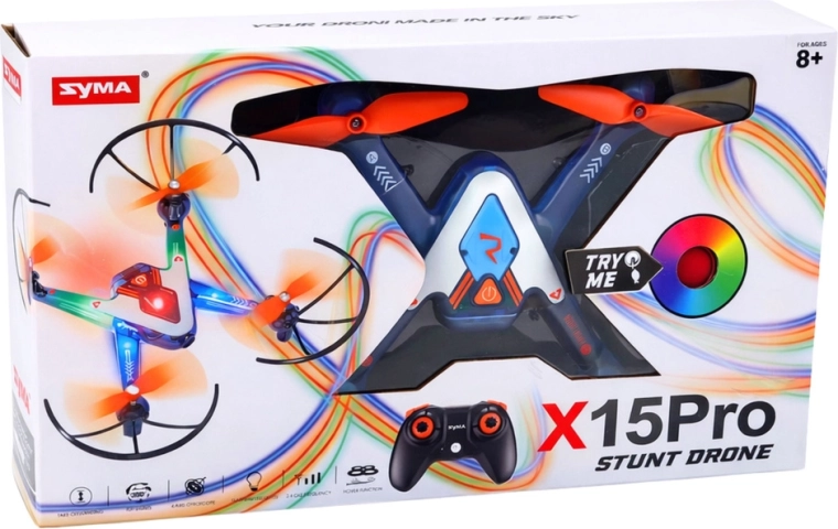 Lagan i okretan akrobatski dron X15 Pro izvrstan je za početnike i zabavno letenje vani i u domu. Nudi optičko pozicioniranje za stabilno lebdenje, automatsko polijetanje i slijetanje, 360° akrobacije i šarene LED diode za bolju orijentaciju. Pouzdano upravljanje na 2,4 GHz, 6-osni žiroskop i zaštitni okviri elisa osiguravaju siguran i gladak let.