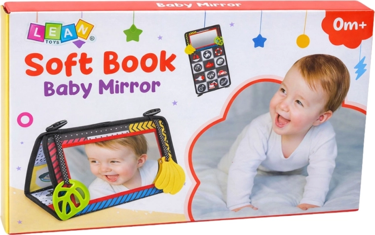 Ova sklopiva kontrastna igraća podloga osmišljena je za potrebe najmlađih. Odvažni uzorci i geometrijski oblici u kombinaciji crne, bijele i crvene boje potiču koncentraciju i vizualnu percepciju. Sigurno dječje ogledalo ohrabruje bebu na otkrivanje mimike i vlastitog odraza, što prirodno razvija samosvijest.