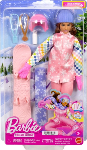 Otkrijte svijet zimskih sportova s lutkom Barbie snowboarderica iz serije Barbie Karijera. Moderan zimski outfit, realistični dodaci i snowboard koji mijenja boju potiču kreativnu igru i razvijaju maštu. Sjajan poklon za male zaljubljenike u zimu, planine i aktivno kretanje.