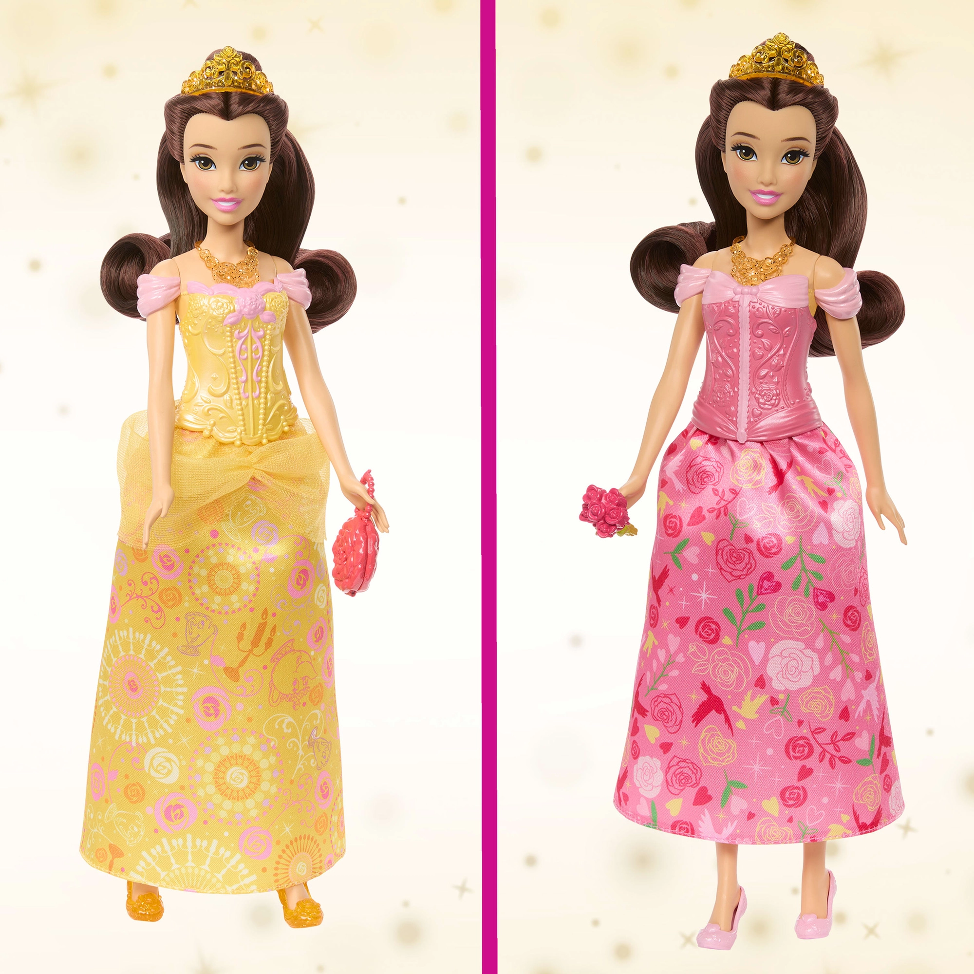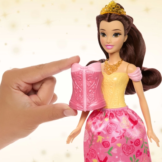 Lutka nudi laku promjenu izgleda – jednostavno zamijenite korzet i suknju i od poslijepodnevnog druženja nastaje čarobni bal. Dugu kosu moguće je češljati i ukrašavati tijarom, dodaci potiču igru uloga, a zahvaljujući zglobnim točkama Belle lijepo pozira u svakoj avanturi.