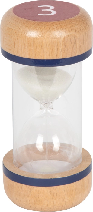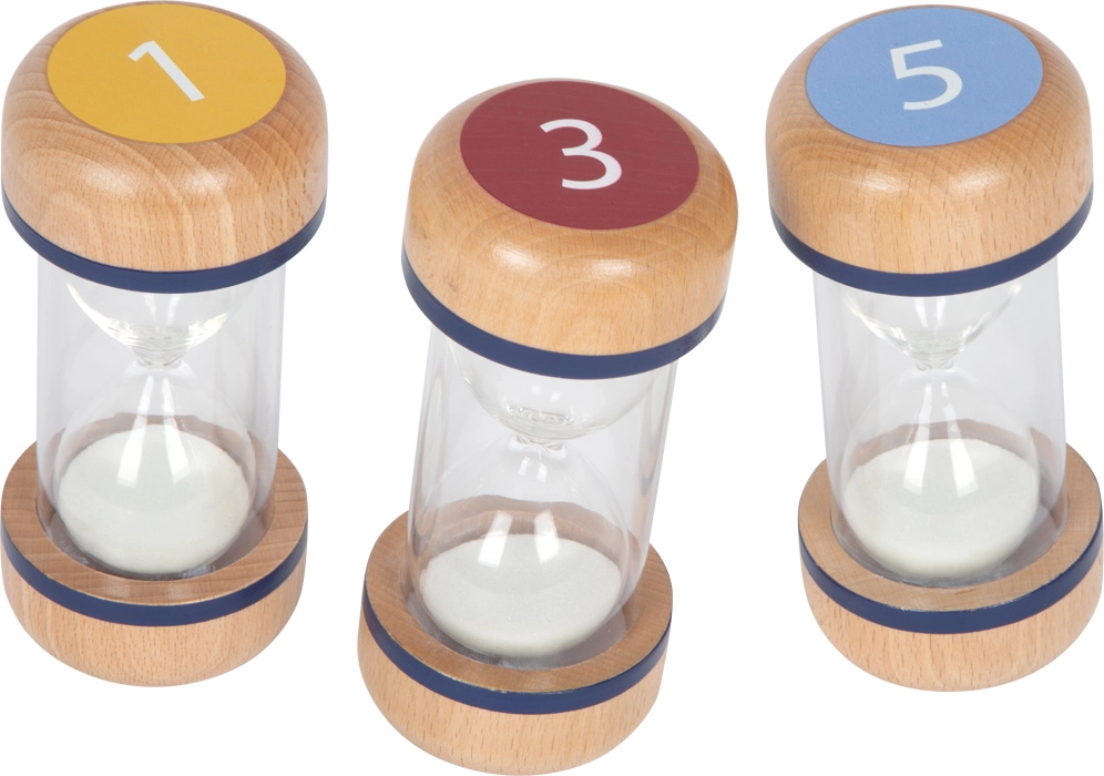Podržite koncentraciju i samoorganizaciju djece s praktičnim setom pješčanih satova. Razlikom boja označeni vremenski intervali 1, 3 i 5 minuta omogućuju jednostavno postavljanje i vizualno praćenje kratkih zadataka i pauza. Transparentno tijelo s bijelim pijeskom osigurava jasnu vidljivost tijeka, dok robusni drveni krajevi od bukovine pružaju stabilnost i sigurno držanje.