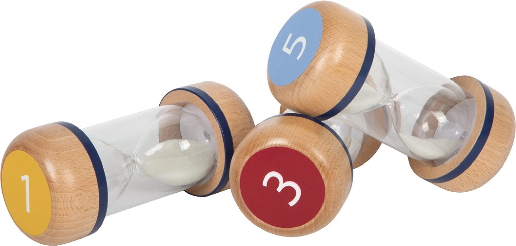 Svaki mjerač vremena je jasno označen brojem na gornjoj strani – dovoljno je okrenuti i pratiti protok pijeska.