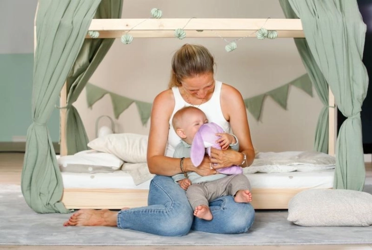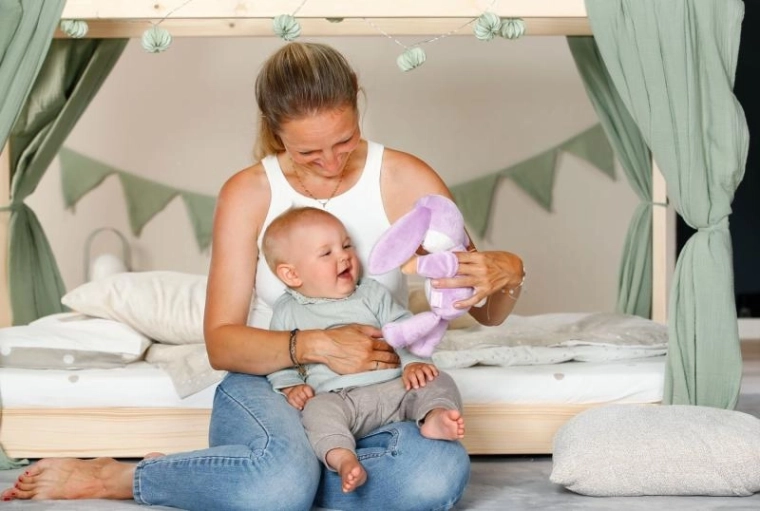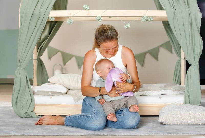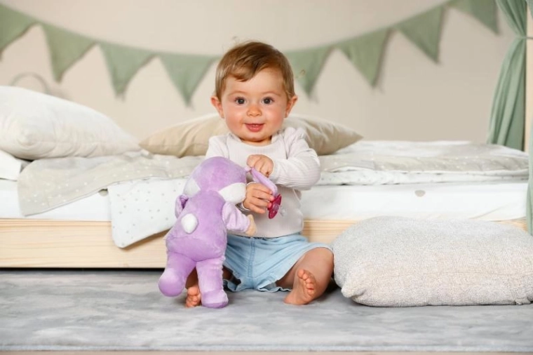 Minimalistički, ali razigrani detalji – duge uši, vezeni ukrasi i nježne teksture – potiču osjetilnu percepciju, maženje i umirivanje. Zeko je savršen kao prva lutka za bebe od rođenja i donosi nježne poticaje za razvoj motorike i mašte.