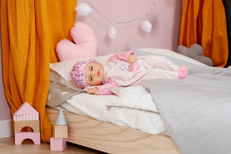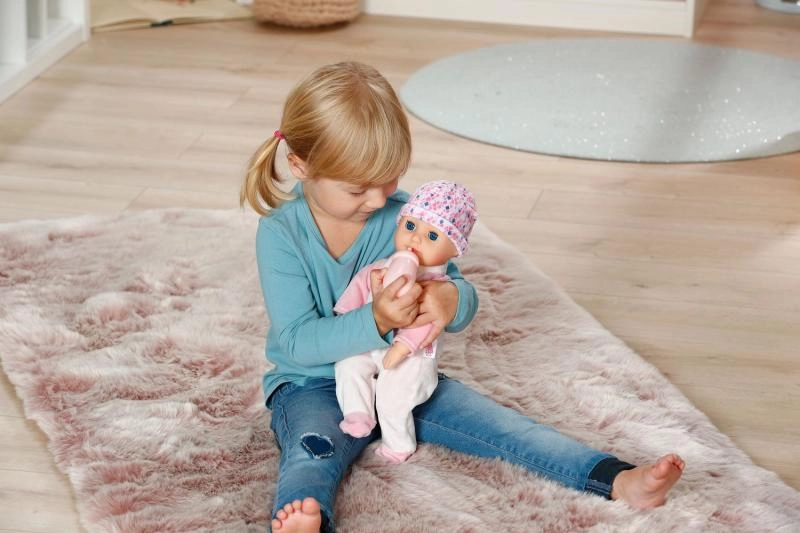 Uključeni su ružičasti bodi s nogavicama, usklađena kapica i bočica. Odjeća BABY born veličine 36 cm savršeno pristaje i lako se kombinira.