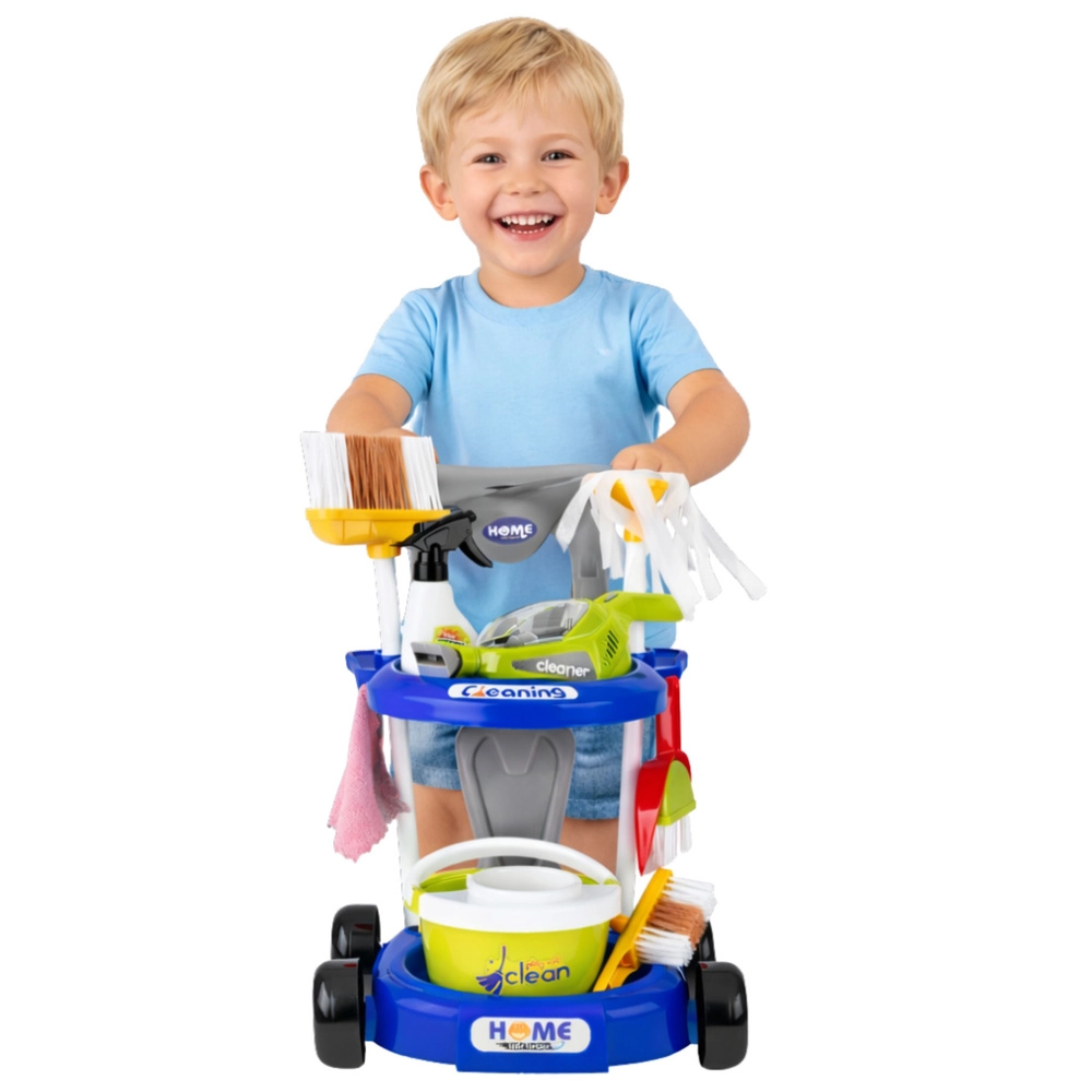 Zaigrani i funkcionalni set za male pomagače u kućanstvu: dječja kolica za čišćenje s interaktivnim usisavačem i 20 dodataka za realističnu igru uloga. Poticanje fine motorike, samostalnosti i kreativnosti; sadrži mop, metlu, četke, kantu, lopaticu, raspršivač i figurativna sredstva za čišćenje. Idealan kao edukativna igračka za zabavu i učenje svakodnevnih navika.