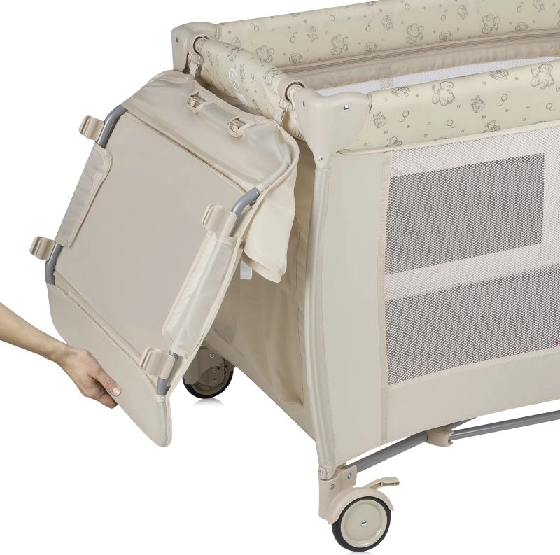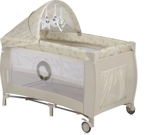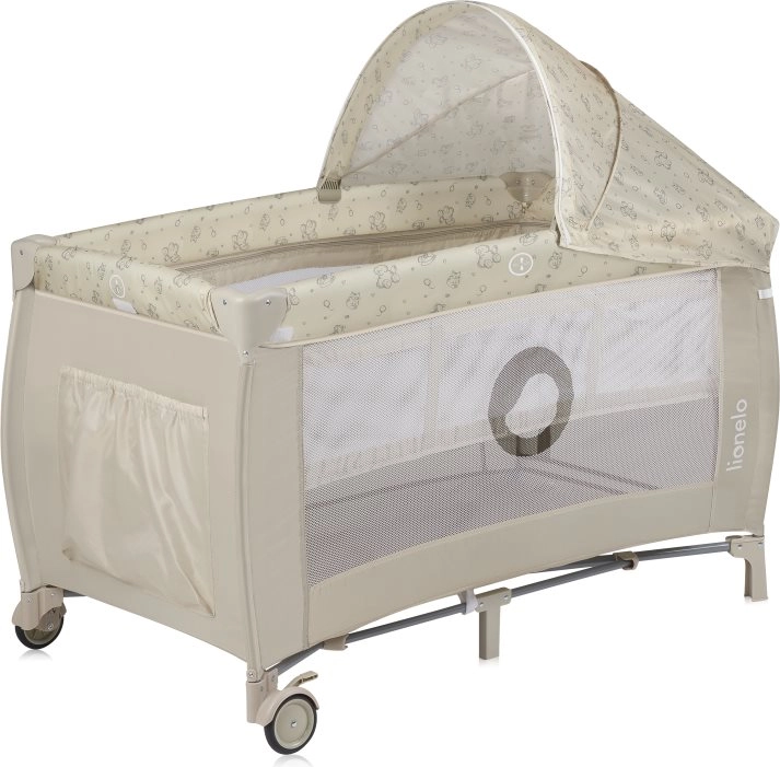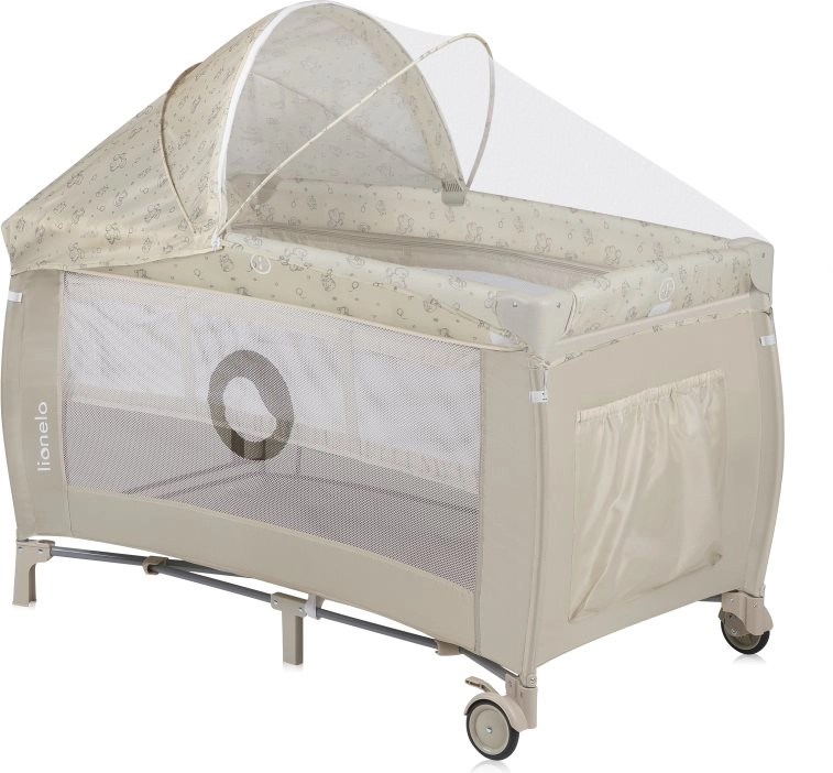 Putni krevetić LIONELO Sven Plus Beige Latte svestrano je rješenje za spavanje, presvlačenje i igru na putovanjima. Zahvaljujući dvjema visinskim razinama madraca savršeno se prilagođava dobi djeteta – viši položaj za novorođenče rasterećuje vaša leđa, niži položaj je siguran za stariju djecu. Prozračne mrežaste stranice osiguravaju izvrsno strujanje zraka i stalan nadzor nad bebom.