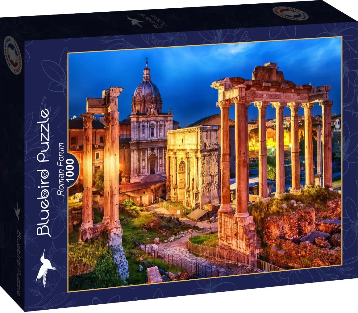 Otkrijte ljepotu antike s kvalitetnim puzzleom BLUEBIRD od 1000 dijelova. Slika rimskih ruševina ističe se detaljnom obradom i ugodnim bojama, koje jamče opuštajuće slaganje i izvrstan rezultat za izlaganje. Dimenzija nakon slaganja je približno 68,3 × 48 cm.