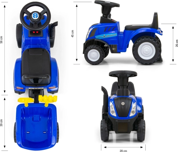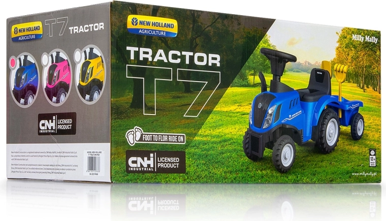 Otkrijte zabavu u dvorištu i kod kuće s guralicom NEW HOLLAND T7. Kvalitetna plastična konstrukcija, metalne osovine kotača i zaštita od prevrtanja unatrag osiguravaju sigurnu vožnju. Djeca lako usvajaju koordinaciju i razvijaju motoriku zahvaljujući intuitivnom upravljanju i stabilnom sjedu s udobnim sjedalom i naslonom.