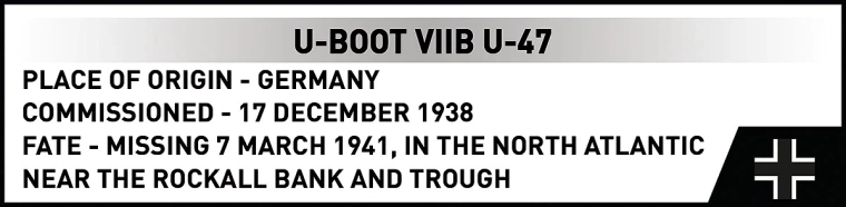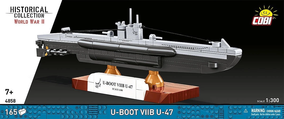 Kompaktan model legendarne njemačke podmornice U-Boot VIIB U-47 u mjerilu 1:300 za ljubitelje povijesti i kolekcionare. Set sadrži 165 kvalitetnih dijelova, nudi vjernu povijesnu oznaku uključujući simbol „Bik iz Scapa Flowa“ i u potpunosti je kompatibilan s ostalim markama konstrukcijskih setova. Idealan za izlaganje na postolju te kao poklon za djecu 7+ i odrasle entuzijaste.
