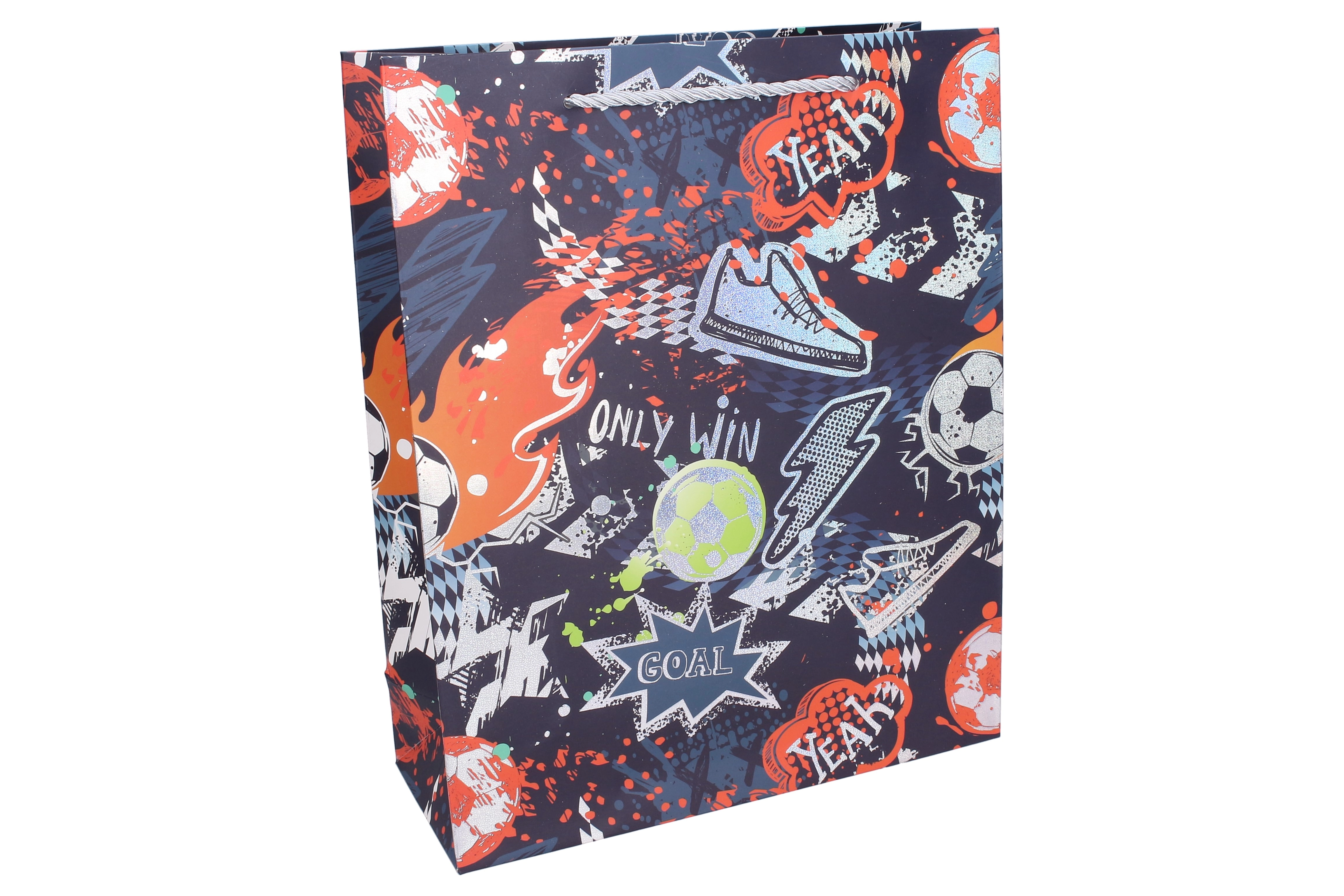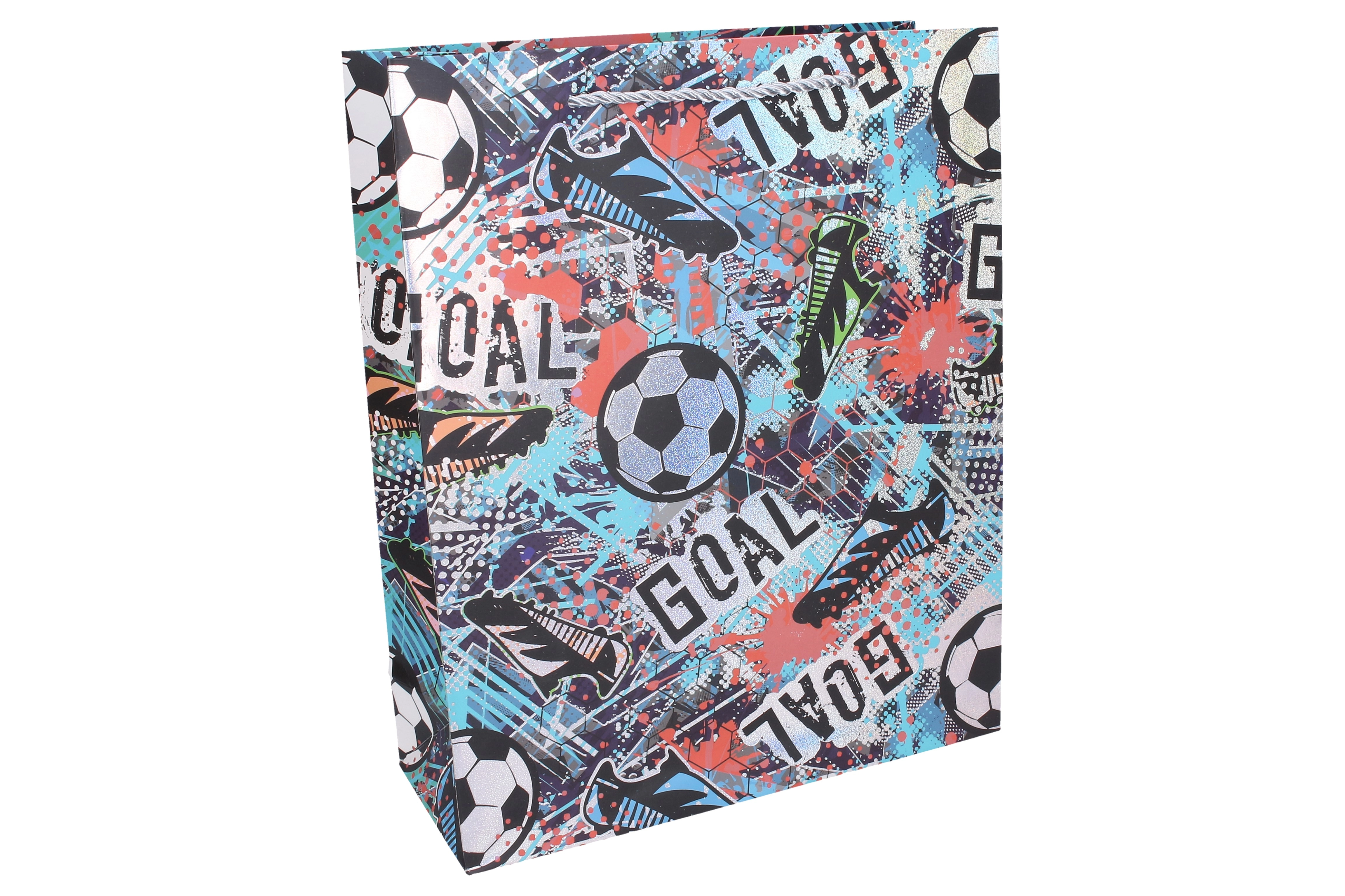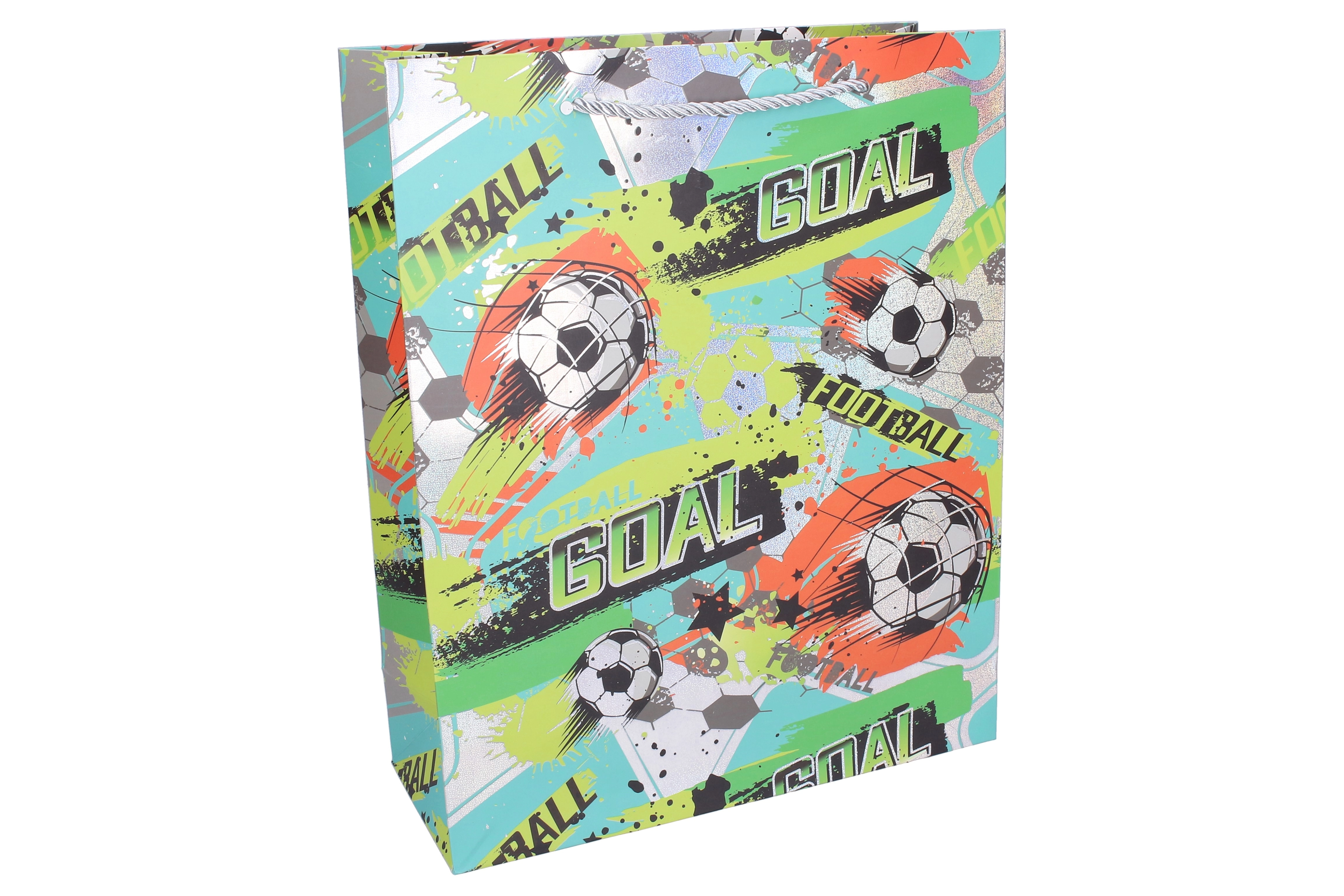 Dizajn privlači pažnju živim bojama i sportskom grafikom, koja odgovara i dječacima i djevojčicama koji vole nogomet. Vrećica dolazi u asortiranim varijantama boja, pa će svaki poklon izgledati originalno i svečano.