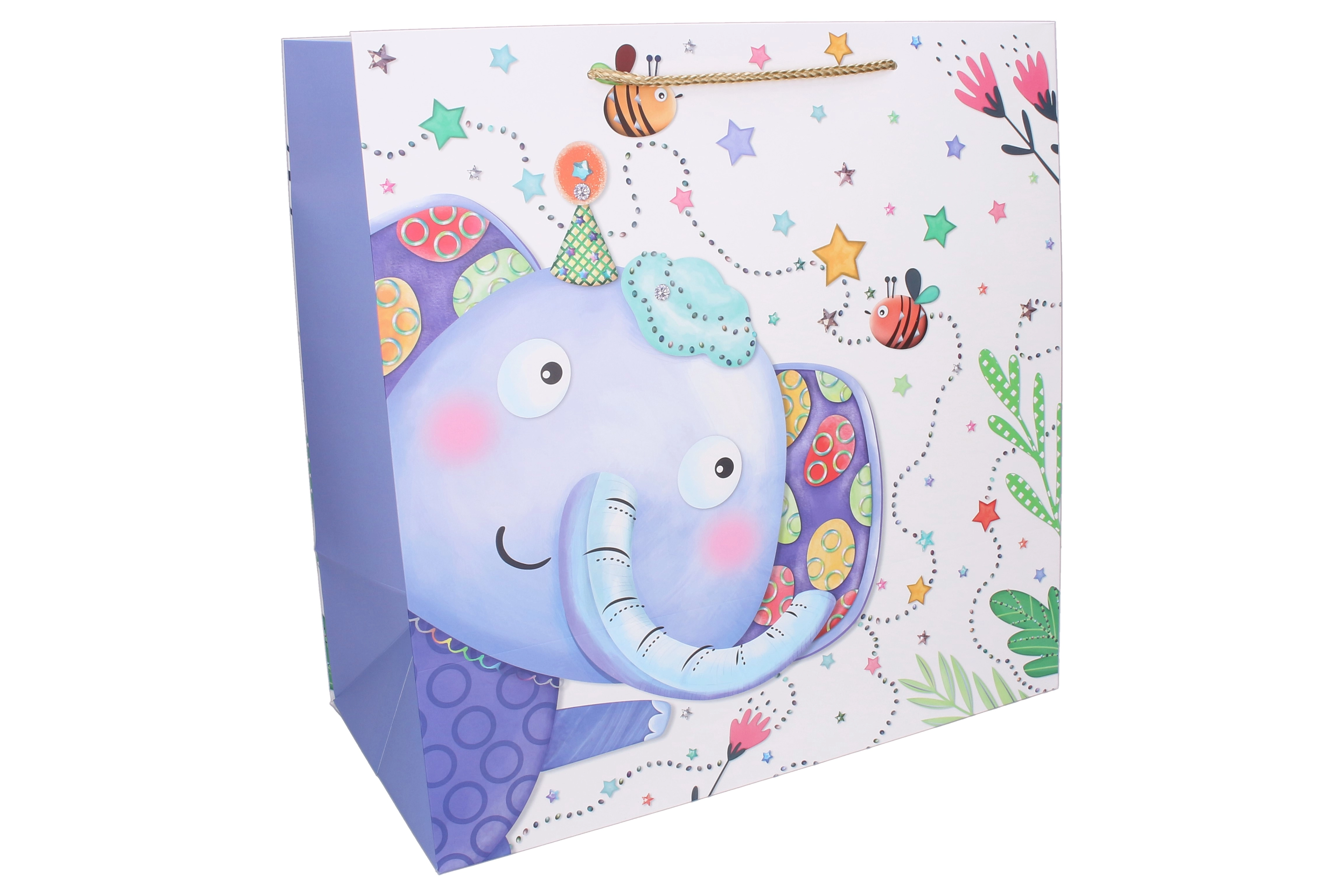 Ova prostrana poklon-vrećica s dječjim motivima savršen je izbor za pakiranje glomaznijih iznenađenja. Kvalitetan papir, šareni tisak i čvrste ušice od špage jamče lako i sigurno prenošenje. Preslatke životinjice i razigrane ilustracije svakom će poklonu dati vedar izgled.