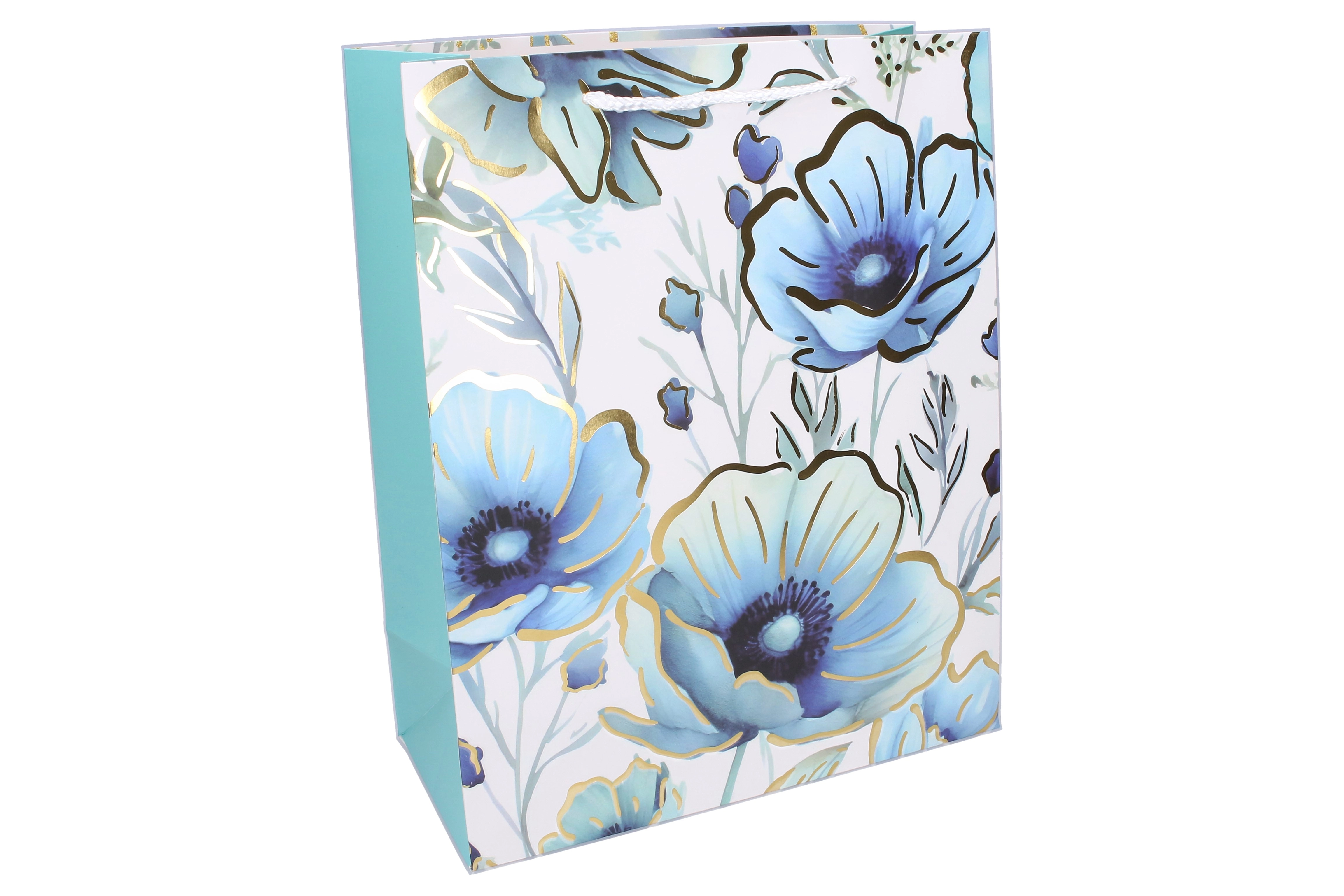 Ova cjelogodišnja poklon-vrećica u kompaktnoj veličini S savršen je izbor za elegantno uručivanje poklona. Kvalitetan papir, ojačano dno i bokovi te udobne ručke osiguravaju siguran hvat i pri većem opterećenju. Cvjetni uzorci u pastelnim i plavim tonovima s nježnim zlatnim detaljima daju poklonu poseban izgled.