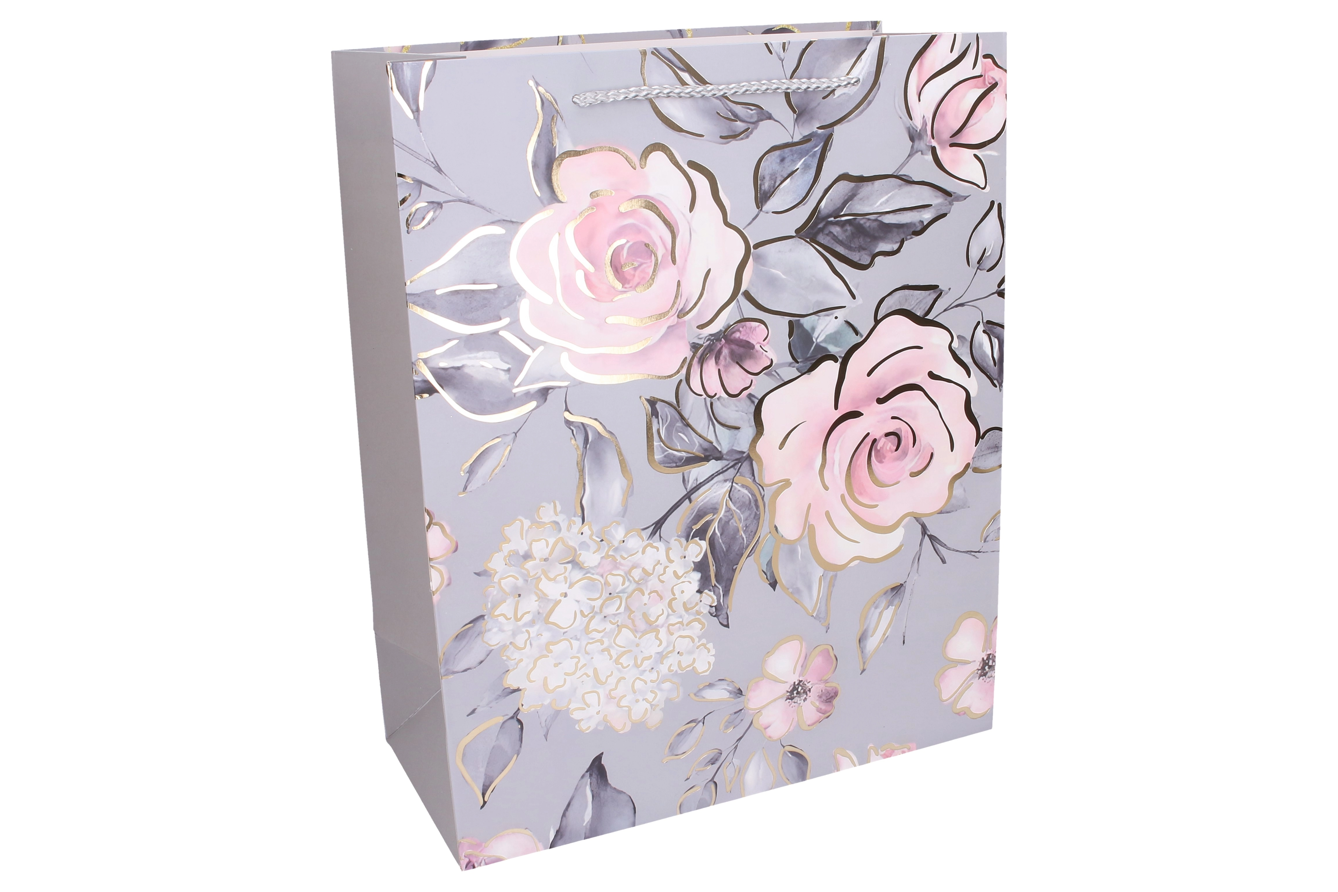 Elegantna poklon-vrećica veličine S, dimenzija 18 × 23 × 10 cm, idealna je za manje poklone tijekom cijele godine. Nudi čvrstu izradu, bočne nabore (gusset) za više prostora i stilske cvjetne motive s metaliziranim akcentima. Zahvaljujući udobnim uzicama/saten vrpcama i usklađenim bojama osigurava reprezentativno i sigurno pakiranje vašeg poklona.