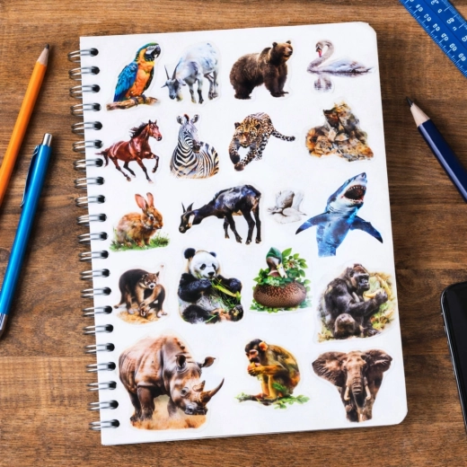 Ove šarene naljepnice s realističnim motivima životinja pretvorit će svaki projekt u originalno djelo. Zahvaljujući prozirnoj podlozi ističe se sama životinja, a naljepnica djeluje čisto i moderno na svijetlim i tamnim površinama. Glatka površina olakšava lijepljenje i daje naljepnicama postojan, sjajan izgled.