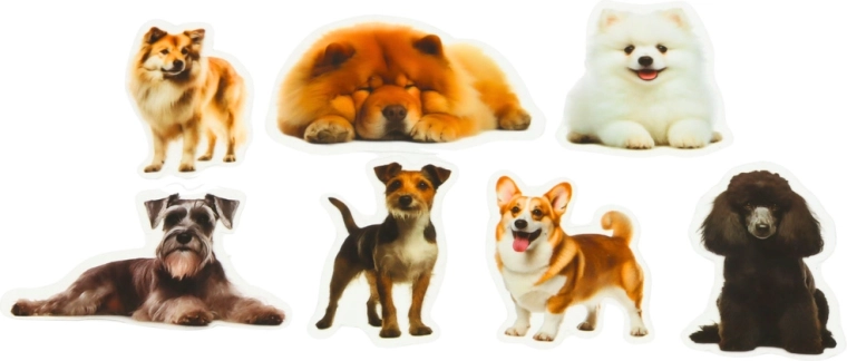Širok izbor pasmina i poza za beskrajne kombinacije pri ukrašavanju dnevnika, scrapbookova i darova.