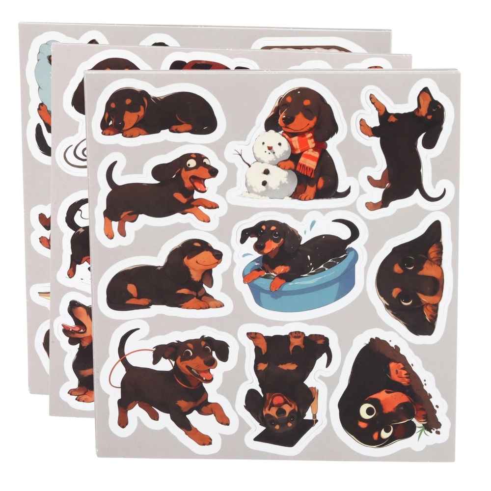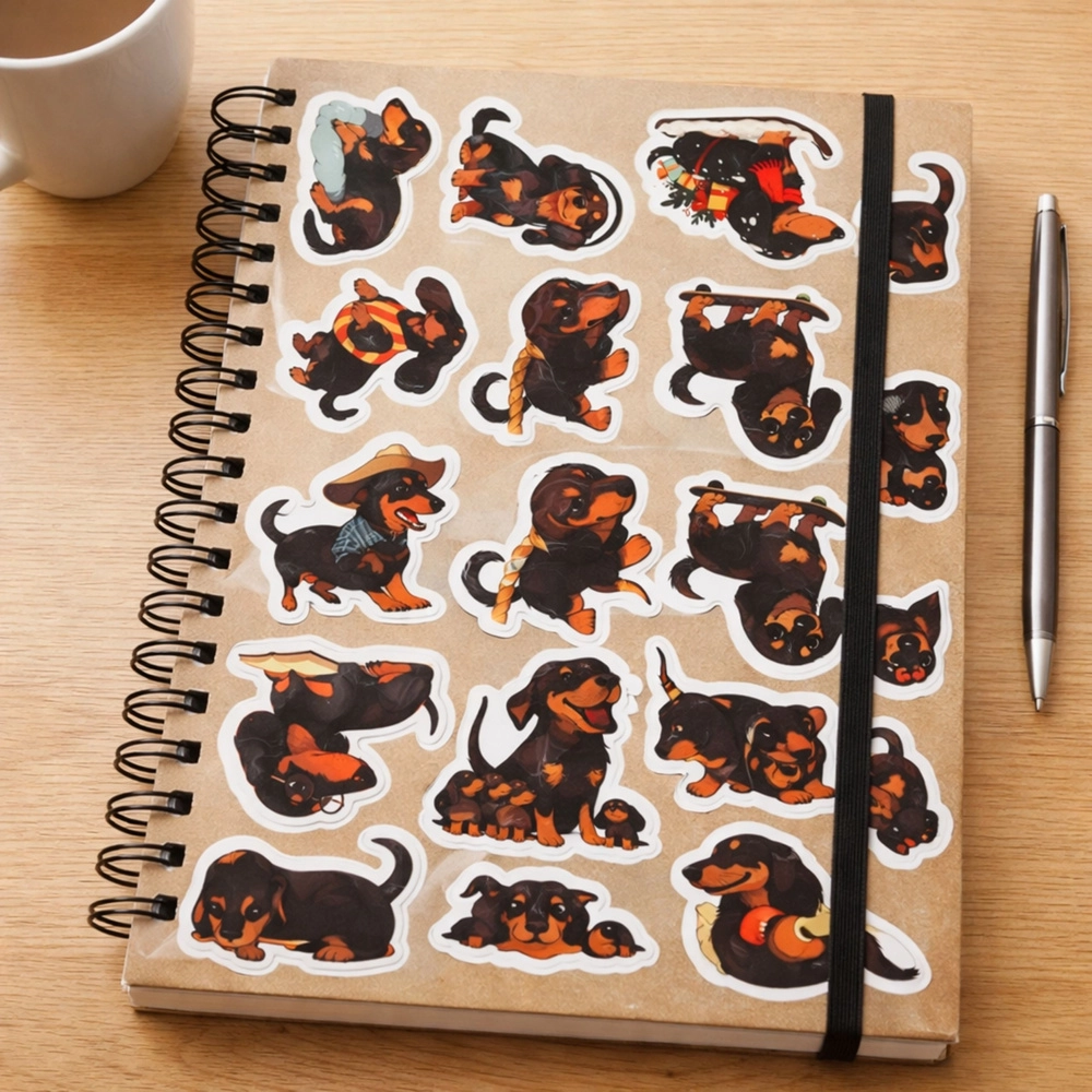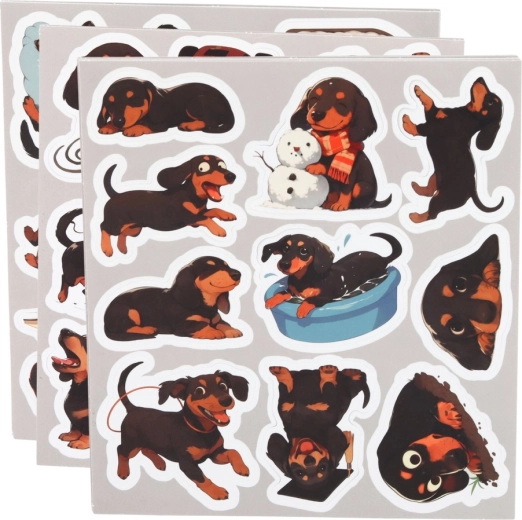 Slatki set naljepnica s motivima jazavičara donosi 54 različita dizajna za ukrašavanje bilježnica, dnevnika, planera ili poklona. Svaka naljepnica prikazuje jazavičara u drugoj pozi, zahvaljujući čemu lako možete stvoriti originalne kompozicije. Naljepnice se lako odljepljuju i dobro prianjaju, imaju praktičnu veličinu oko 5–6 cm i odlično se drže na glatkim površinama.