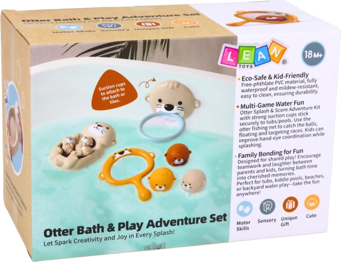 Slatki set za kupanje s motivom vidre pretvara svako kupanje u zabavu. Sadrži veliku vidru s mladuncima, košaru s mrežicom na vakuumskom držaču i dvije mekane loptice. Igračke plutaju na vodi, mogu se hvatati i ubacivati u košaru, a zahvaljujući mekanom, sigurnom materijalu bez ftalata idealne su za osjetilnu stimulaciju i razvoj fine motorike djece od 18 mjeseci.