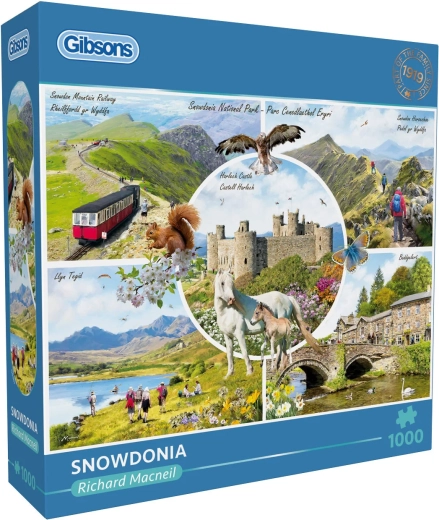 Atmosferska zimska scena iz područja Snowdonije prenijet će vas u mirnu planinsku prirodu. Puzzle od 1000 dijelova imaju nakon slaganja dimenzije približno 68 × 49 cm, idealno za uokvirivanje ili ponovno slaganje. Brend GIBSONS poznat je po kvalitetnoj ljepenki i preciznim izrezima koji osiguravaju ugodno slaganje i dug vijek trajanja.