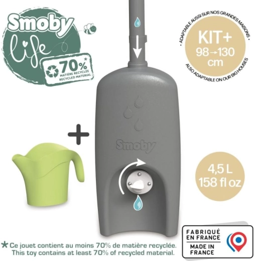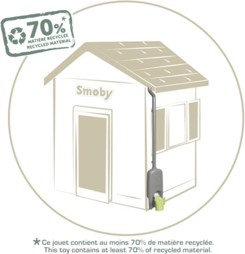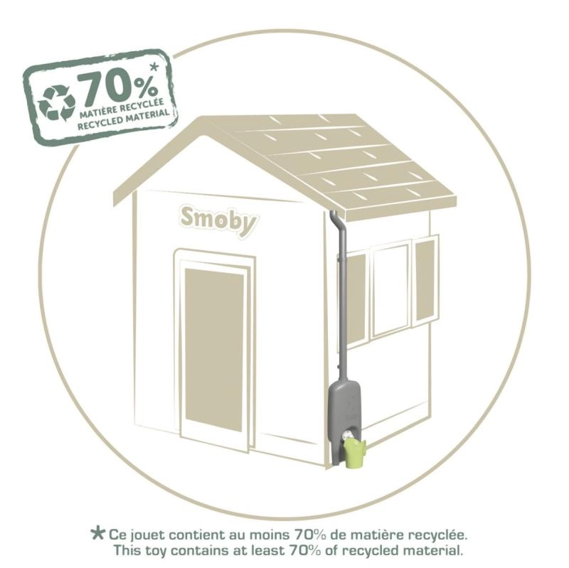 Praktičan dodatak za dječje kućice SMOBY – oluk sa spremnikom za kišnicu i kantom za zalijevanje. Sustav prikuplja vodu u spremnik zapremnine 4,5 l, koju djeca lako koriste za zalijevanje. Zahvaljujući jednostavnoj ugradnji, velikom vijčastom ventilu i Anti‑UV zaštiti, ovaj je dodatak izdržljiv, siguran i spreman za sate vanjske igre i učenja o ekologiji. Sadrži najmanje 70 % recikliranog materijala.