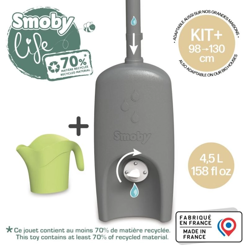 Pretvorite dječju kućicu u zabavni vrtni laboratorij. Oluk sa spremnikom za kišnicu SMOBY lako se montira na odabrane kućice te pomoću odvodnog žlijeba pametno prikuplja kišnicu. Djeca zatim uz pomoć velikog, praktičnog vijčastog ventila natoče vodu u priloženu kanticu i mogu zalijevati gredice ili lončanice – igra se tako pretvara u smisleno druženje i učenje o štedljivom korištenju vode.