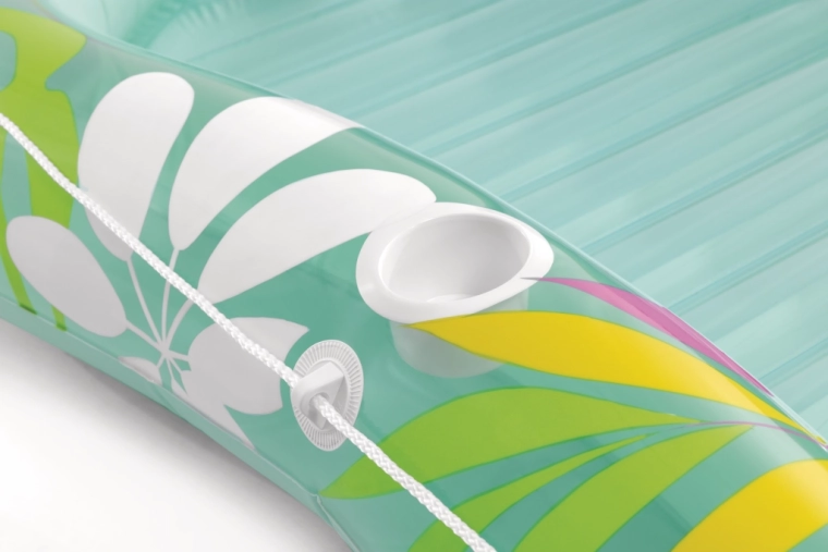 Praktični detalji, poput bočnog držača za napitak i obodne užadi za prihvat, olakšavaju rukovanje i povećavaju udobnost pri izležavanju. Izdržljiv PVC materijal lako se čisti i prikladan je za bazen, jezero i more. Zahvaljujući kompaktnim dimenzijama nakon ispuštanja zraka, madrac se lako prenosi i sprema.