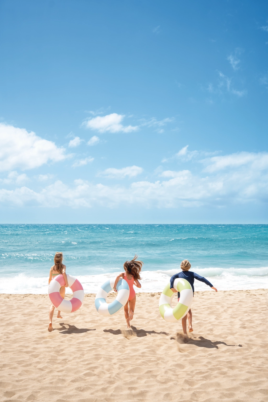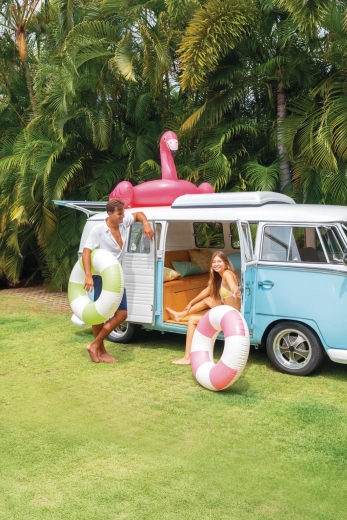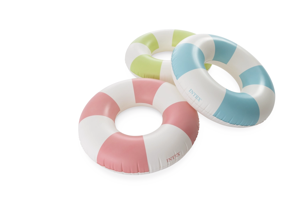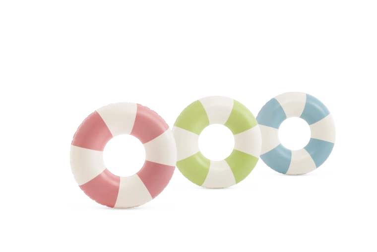 Napuhujući kolut Coastal Cabana spaja svjež dizajn u pastelnim tonovima plave, zelene i ružičaste s praktičnim značajkama za sigurne i udobne vodene radosti. Zahvaljujući promjeru od 91 cm pruža dovoljno prostora i udobnosti kako za bazen, tako i za more.