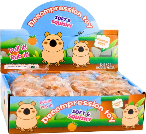 Antistresna igračka u obliku kapibare izrađena je od mekog i elastičnog squishy materijala, ugodnog na dodir, koji se odlično stišće, pritišće i rasteže. Nakon stiskanja nakratko se deformira, a zatim se polako vraća u prvotni oblik, što djeluje umirujuće i opuštajuće.
