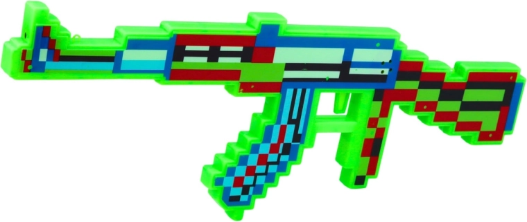 Ova stilska pikselna igračka puška unosi u dječju igru atmosferu retro videoigara. Zahvaljujući intenzivnim svjetlosnim efektima i realističnim zvukovima hitaca svaka je priča dinamičnija i zabavnija. Laka konstrukcija i odvojivi rameni remen osiguravaju udobno nošenje i dulju igru.