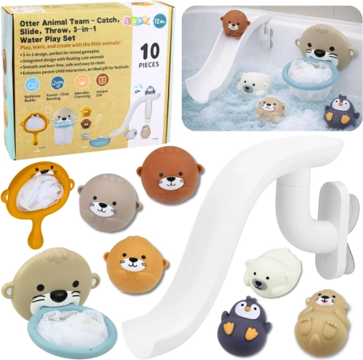 Pretvorite kupanje u zabavu! Ovaj razigrani set za kadu s toboganom, mrežicom i slatkim životinjicama donosi kreativne vodene igre, potiče finu motoriku i koordinaciju oko–ruka. Dijelovi se lako pričvršćuju pomoću vakuumskih čašica, životinjice plutaju i kližu niz stazu, a mrežica pomaže uloviti igračke i olakšati pospremanje nakon kupanja.