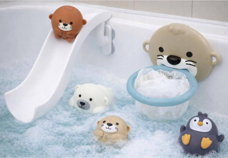 Set kupaćih igračaka s toboganom, mrežicom i plutajućim životinjicama pretvara svako kupanje u uzbudljivu vodenu pustolovinu. Djeca mogu puštati životinjice niz tobogan, hvatati ih mrežicom i otkrivati jednostavne vodene eksperimente – sve to potiče razvoj mašte i učenje kroz igru.
