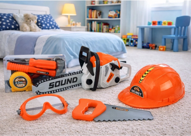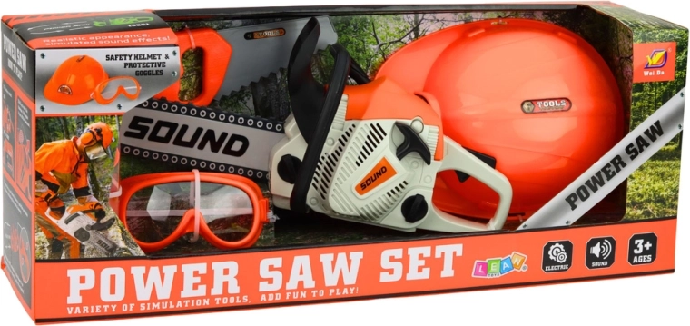 Dječji set alata s motornom pilom, kacigom i naočalama sa zvukovima