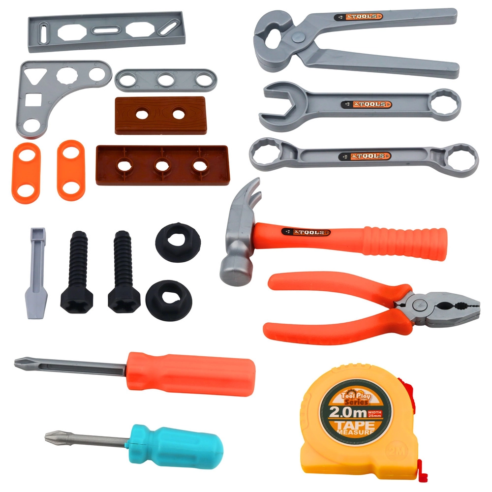 Ručna pila, čekić, odvijači, ključevi i mjerilo proširuju mogućnosti igre i razvijaju finu motoriku.