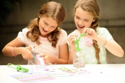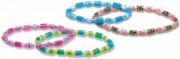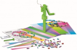 Sadrži šarene papirnate trake i potrebne materijale za izradu perli i narukvica.