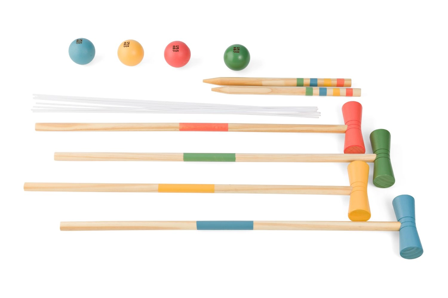 Uživajte u zabavi na otvorenom s ovom drvenom kroket setom za 2–4 igrača od 3 godine naviše. Igra razvija preciznost, koordinaciju ruka–oko i nudi satima aktivne zabave na otvorenom. Zahvaljujući raznobojno označenim elementima lako se igra u timovima, a kvalitetna drvena izrada iz odgovorno gospodarenih šuma jamči dug vijek trajanja.