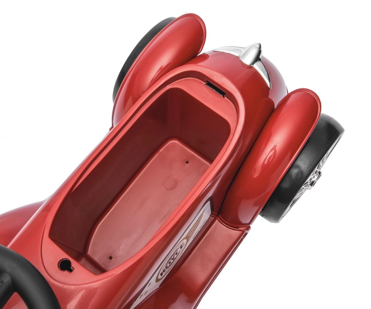 Volan s ograničenjem zakreta pomaže spriječiti prevrtanje, a sirena razveselit će svakog malog zaljubljenika u automobile. Ispod sjedala skriva se praktičan spremnik za sitnice. Kromirana prednja “rešetka” i retro detalji s logotipom ROYCE daju igrački notu bezvremenskog stila.
