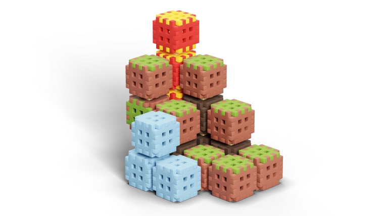Kocke s višestranim spojnicama omogućuju čvrsto povezivanje sa svih strana. Gradite teren, tornjeve i stepenaste strukture te ih u svakom trenutku preradite prema mašti.