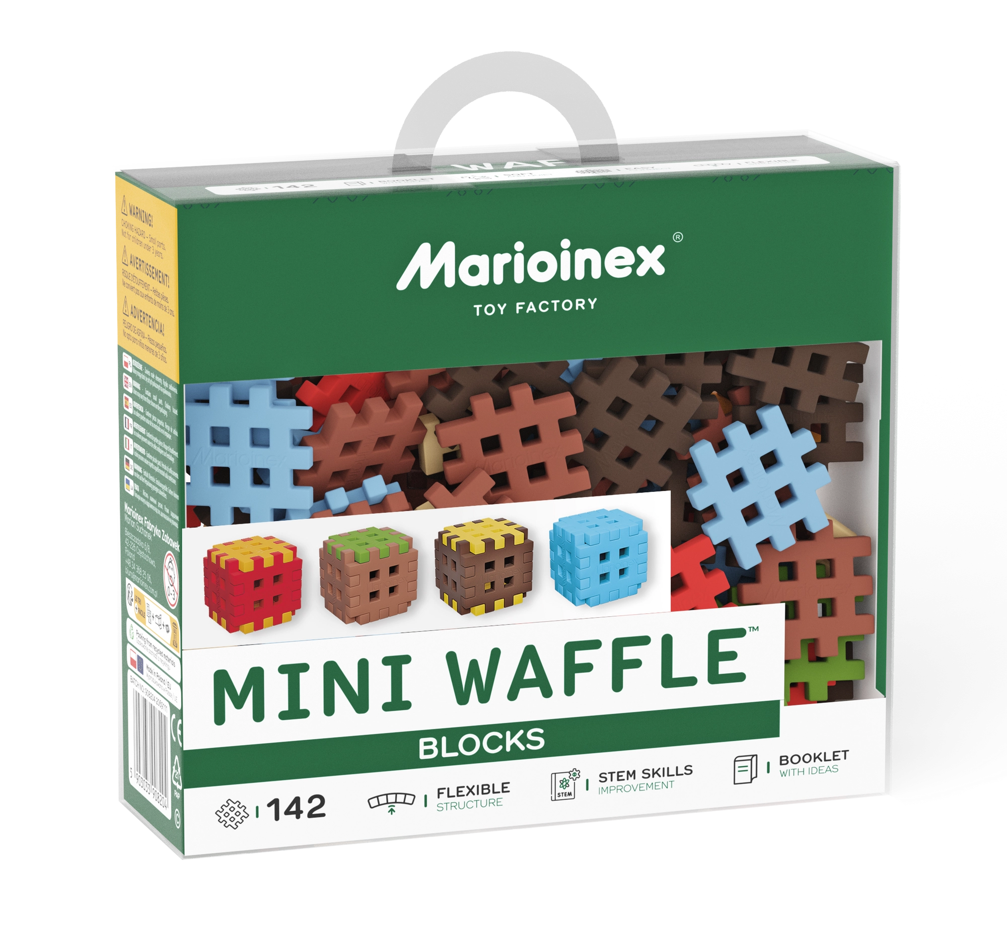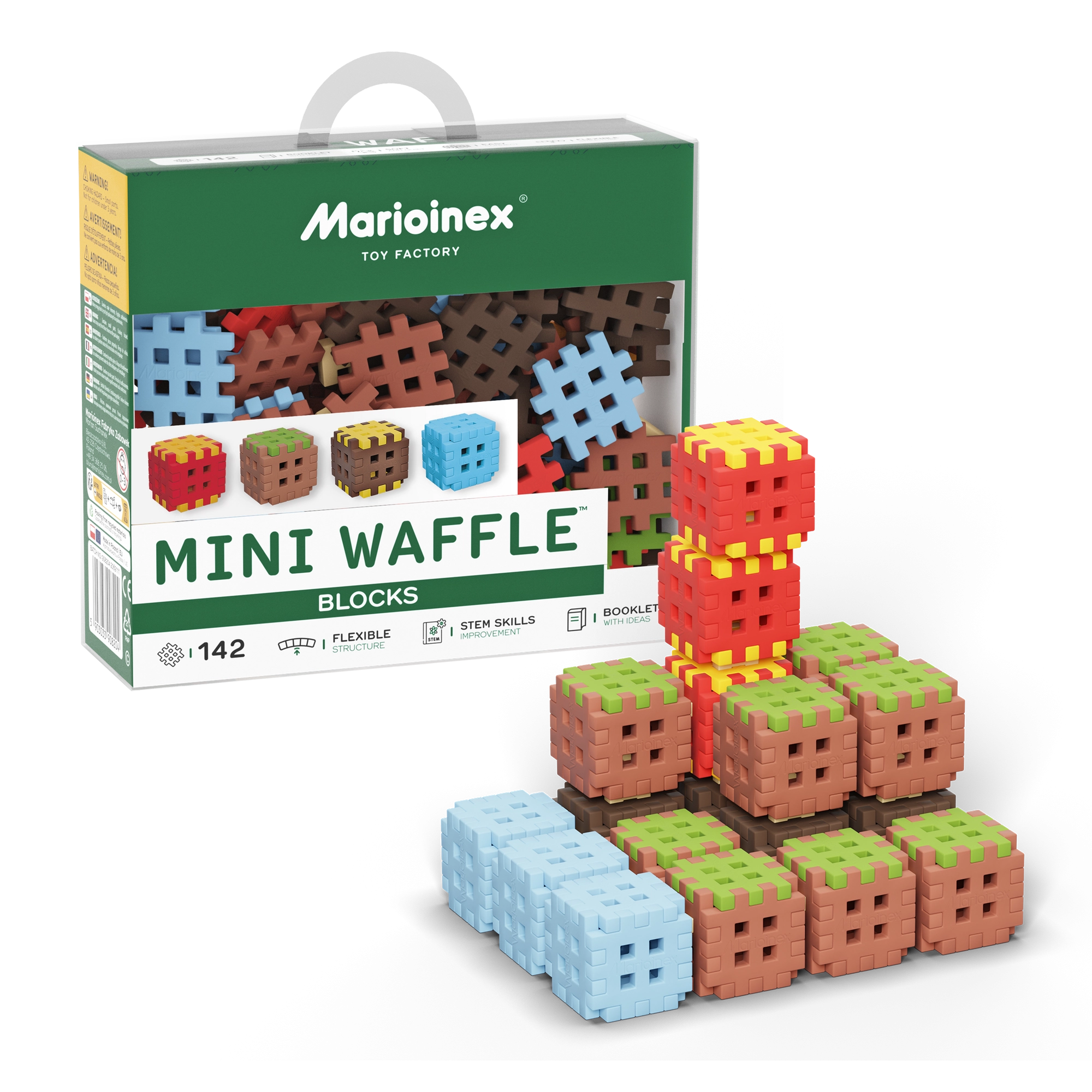 Konstrukcije drže čvrsto, a istovremeno se mogu brzo pregraditi prema trenutnoj ideji. Iz jednog seta nastaju čitavi „pejzaži”, od temelja do šarenih građevina – svaki put drugačiji. Svi setovi Mini Waffle međusobno su kompatibilni, pa vaši svjetovi mogu stalno rasti.