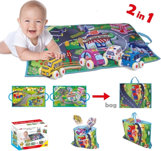 Igraća podloga 2-u-1 s mekanim autićima