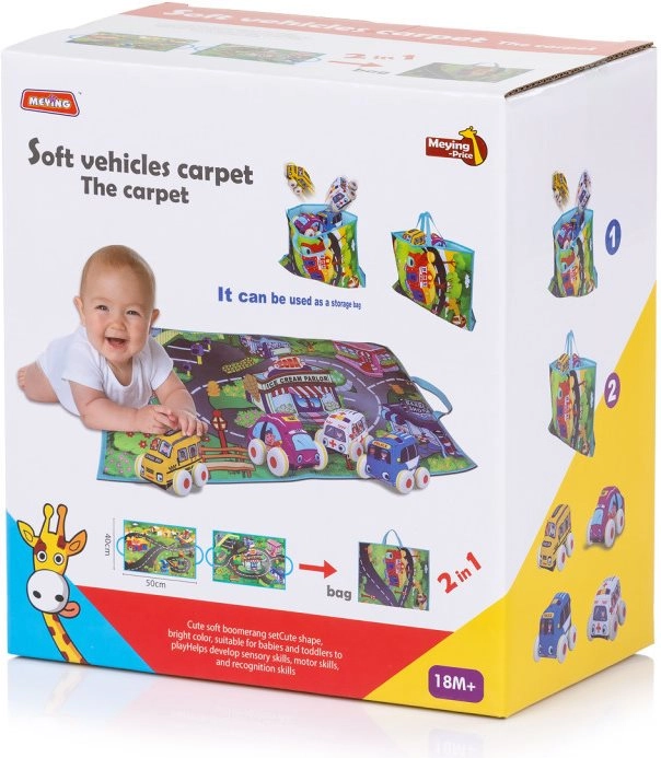 Zabavna i prenosiva igraća podloga 2-u-1 s mekanim autićima donosi djeci sate kreativne igre. Mekani i sigurni materijali, pokretni kotačići za glatku vožnju i cestovna karta na podlozi potiču maštu, razvoj motorike i socijalnu igru. Zahvaljujući sklopivom dizajnu lako se prenosi i sprema – idealno za dom i putovanja.