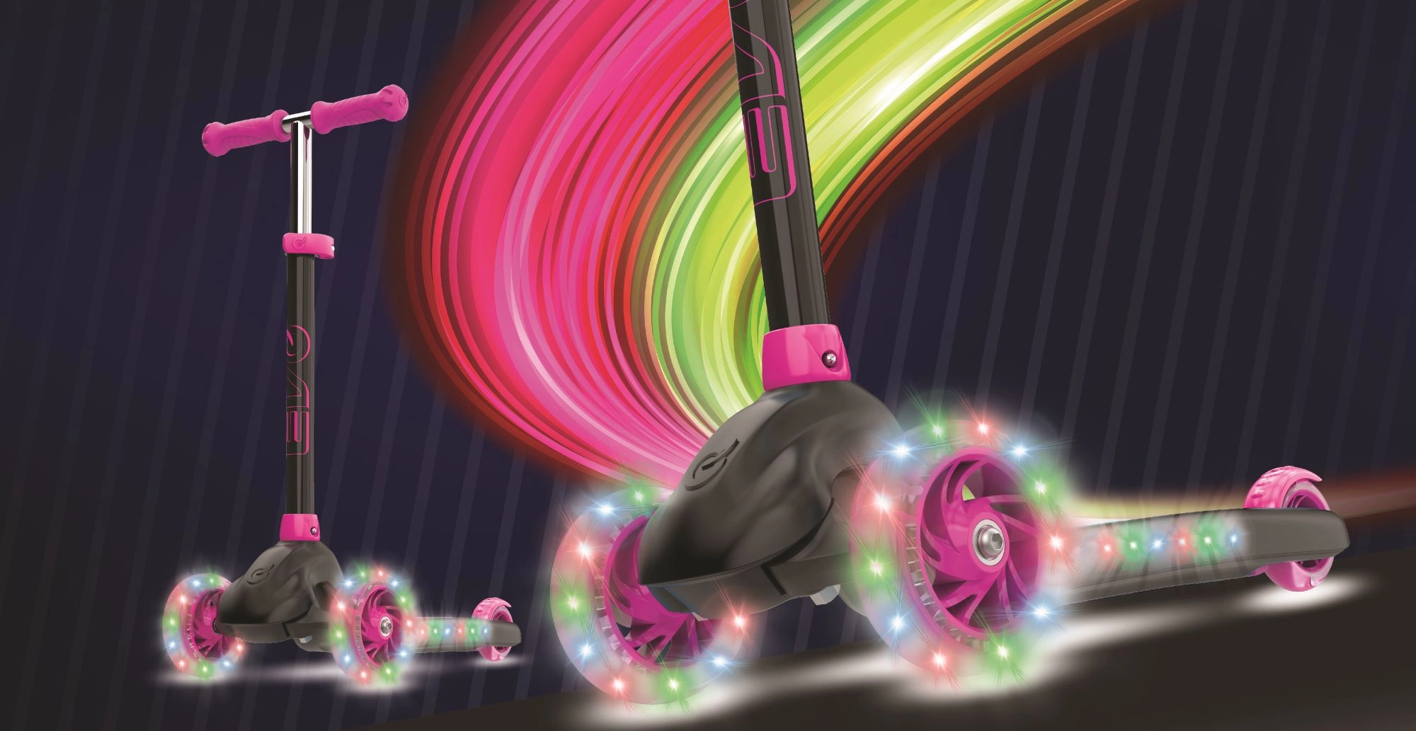 Trotinet EVO Eclipse idealan je prvi izbor za male vozače. Zahvaljujući dvama velikim prednjim kotačima i niskoj podnici nudi iznimnu stabilnost, dok balansno skretanje nagibom pomaže djetetu prirodno razvijati ravnotežu i koordinaciju. LED kotači i osvijetljeno podvozje uljepšat će svaku vožnju i povećati vidljivost u večernjim izlascima.