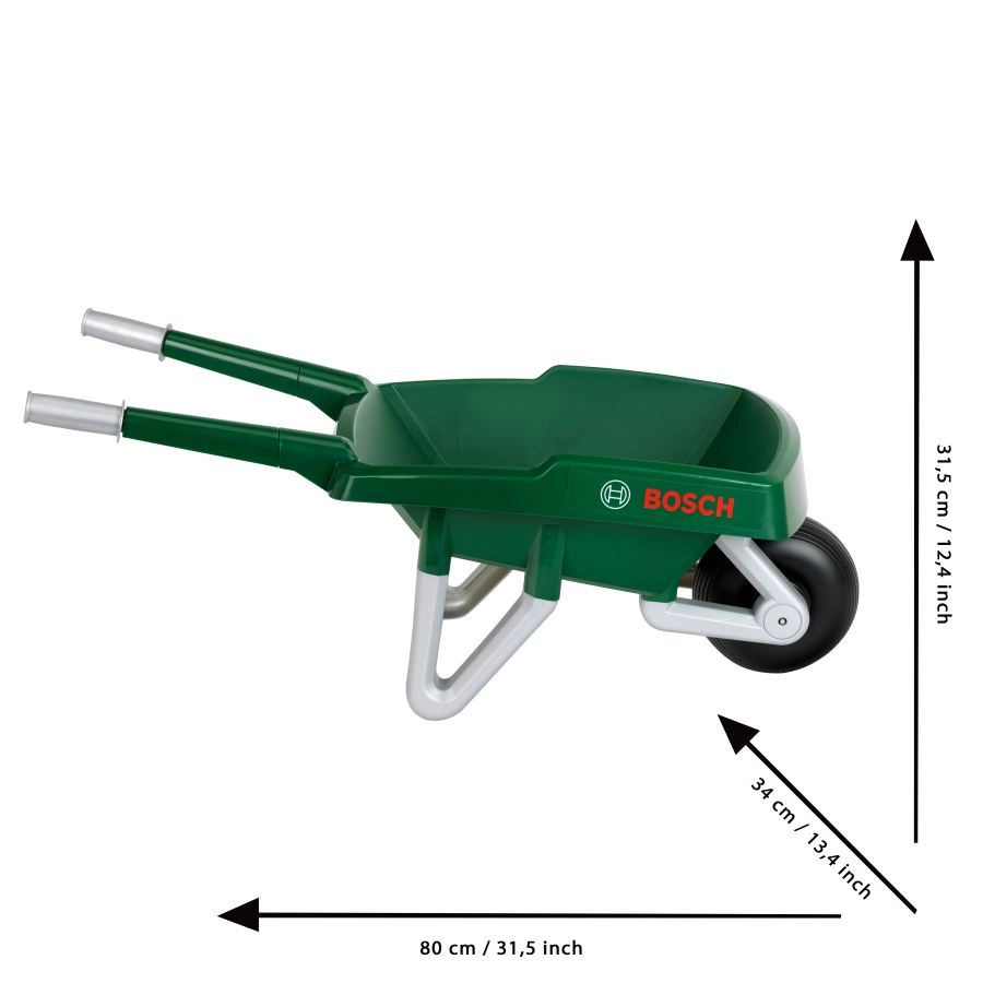 Lagana i izdržljiva dječja tačka s licencom BOSCH brenda Klein razveselit će male vrtlara. Plastična kada u tamnozelenoj boji, stabilan kotač, dvostruke potporne noge i udobne ručke za lako upravljanje. Idealna za prenošenje lišća, pijeska ili igračaka u vrtu.
