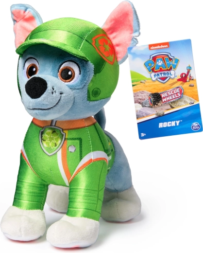 Pripremite se za spasilačke misije s Rockyjem iz PAW Patrol! Ovaj kvalitetni plišanac u sjajnoj zelenoj uniformi Rescue Wheels s kacigom i značkom vjerno dočarava omiljenog junaka. Mekano izrade i sigurni vezeni detalji jamče ugodno maženje i sigurnu igru.