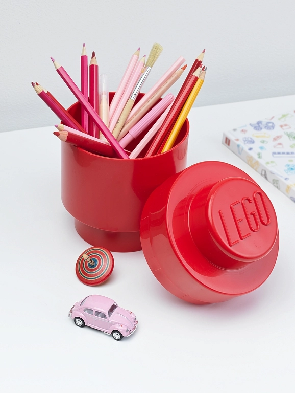Unesite red i razigran dizajn u prostor s okruglom spremničkom kutijom nadahnutom kultnom LEGO kockom. Zahvaljujući kompaktnim dimenzijama savršeno pristaje na radni stol, policu ili u dječji kutak te pouzdano prima pribor za pisanje, sitne igračke ili dijelove slagalica.