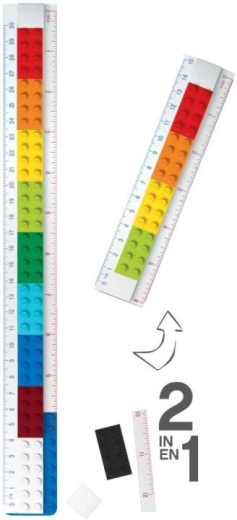 Zabavno i praktično LEGO ravnalo 30 cm s minifigurićem lako ćete sastaviti prema svojim potrebama. Zahvaljujući izmjenjivim šarenim dijelovima prilagodite izgled i duljinu te ćete cijeniti mjerilo u centimetrima i inčima. Podloge omogućuju pričvrstiti olovku, šiljilo ili omiljenu figuricu – idealno za školu, ured i kreativnu igru.