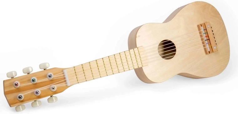 Ova prirodna drvena gitara djeci otvara svijet ritmova i melodija. Zahvaljujući šest podešivih žica mogu isprobati osnove sviranja, razvijati glazbeni osjećaj i samoizražavanje. Izdržljiva konstrukcija od kvalitetnog drva osmišljena je za svakodnevno dječje istraživanje.