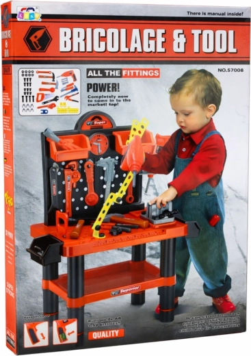 Kreativna dječja radna klupa s bogatim setom alata idealna je za sobu, garažu i igraonicu. Nudi stabilnu radnu plohu, visinu od 70 cm i pametnu pohranu za red i preglednost. U paketu je baterijska bušilica, podesivi stolarski škripci, pegboard za alat, mjerilo na ploči i mnoštvo dodataka za igru malog majstora. Potječe razvoj fine motorike, logičkog razmišljanja i kreativnosti.