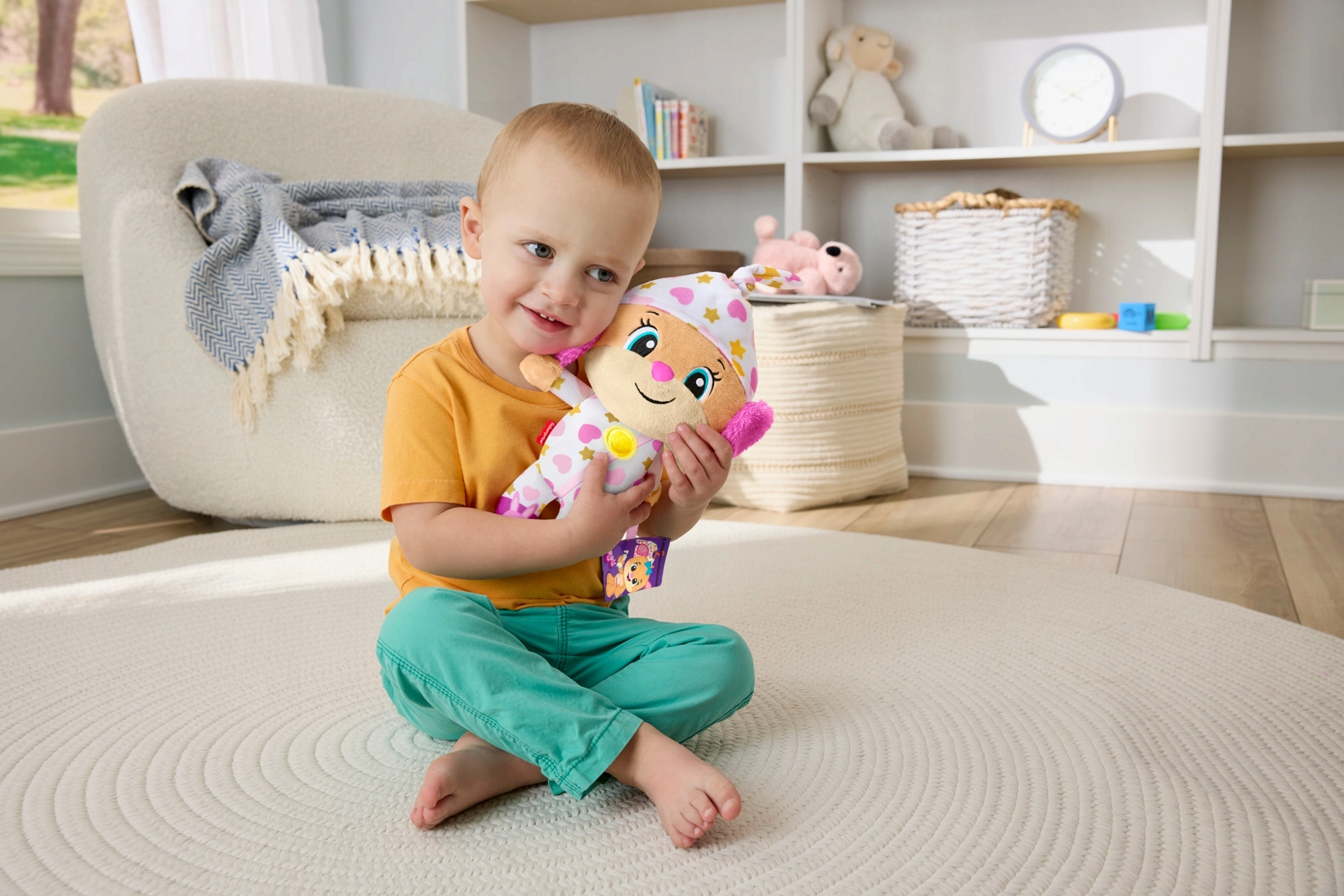 Interaktivna plišana igračka Uči i smij se! idealan je prijatelj za večernje rituale i mirne trenutke tijekom dana. U pidžamici s razigranim uzorcima i sa svjetlećim srcem stvara ugodnu atmosferu za smirivanje, opuštanje i uspavljivanje.