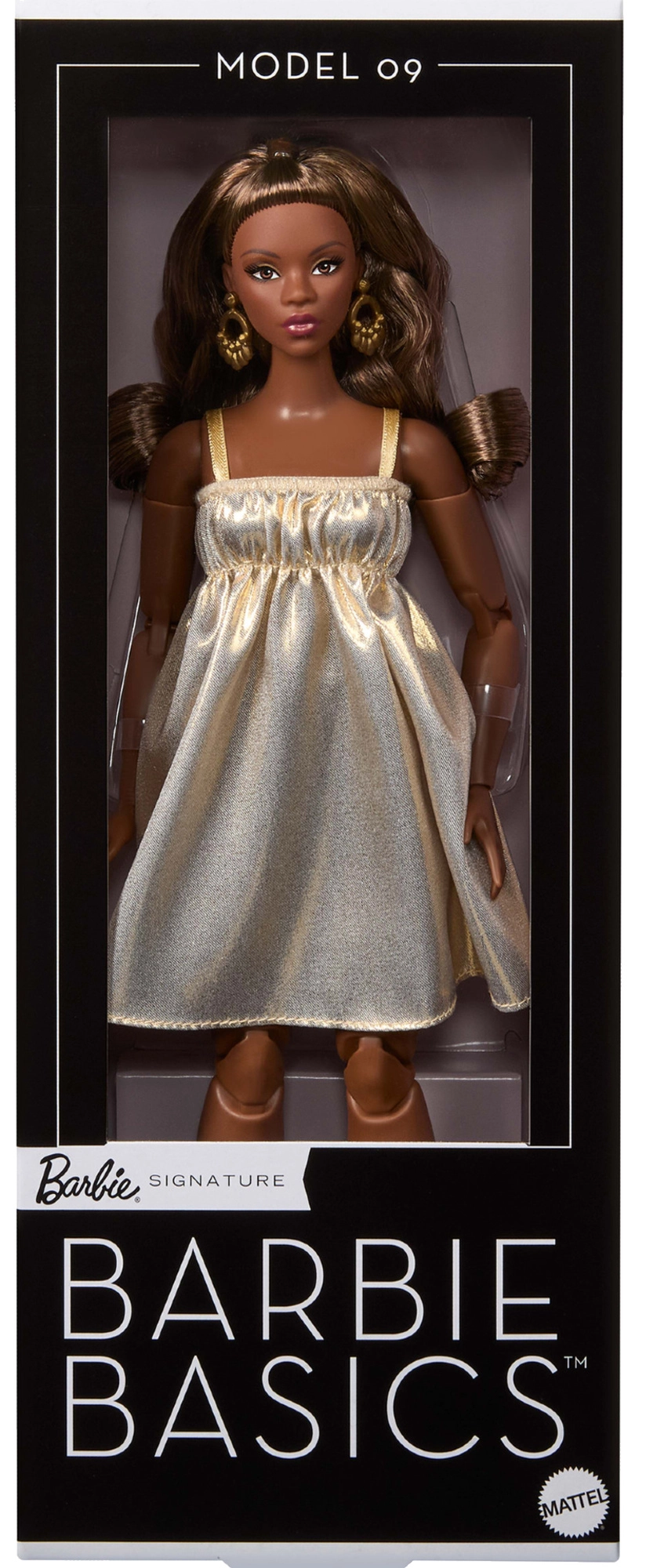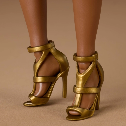 Stil je usklađen u neutralnim i bezvremenskim tonovima sa zlatnim akcentima – svjetlucava zlatna haljina upotpunjena je decentnom šminkom i suptilnim detaljima. Lutka je kompatibilna s dodacima BARBIE i savršeno se uklapa u kreativne odjevne kombinacije i miksanje stilova.