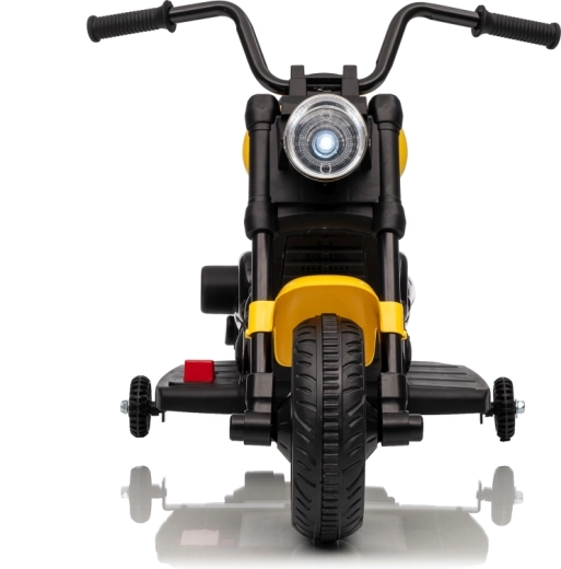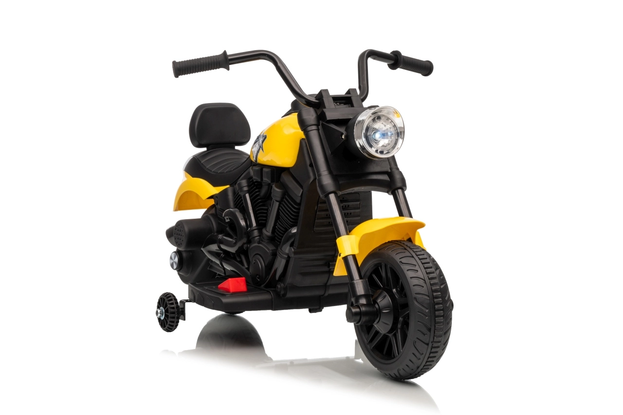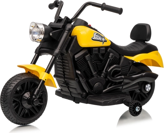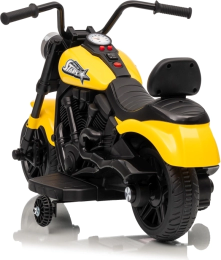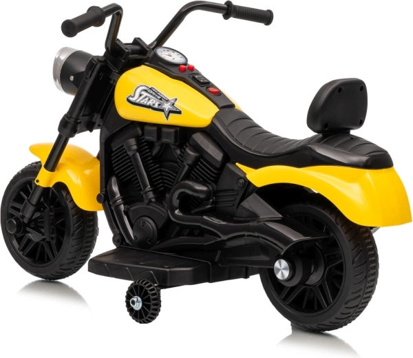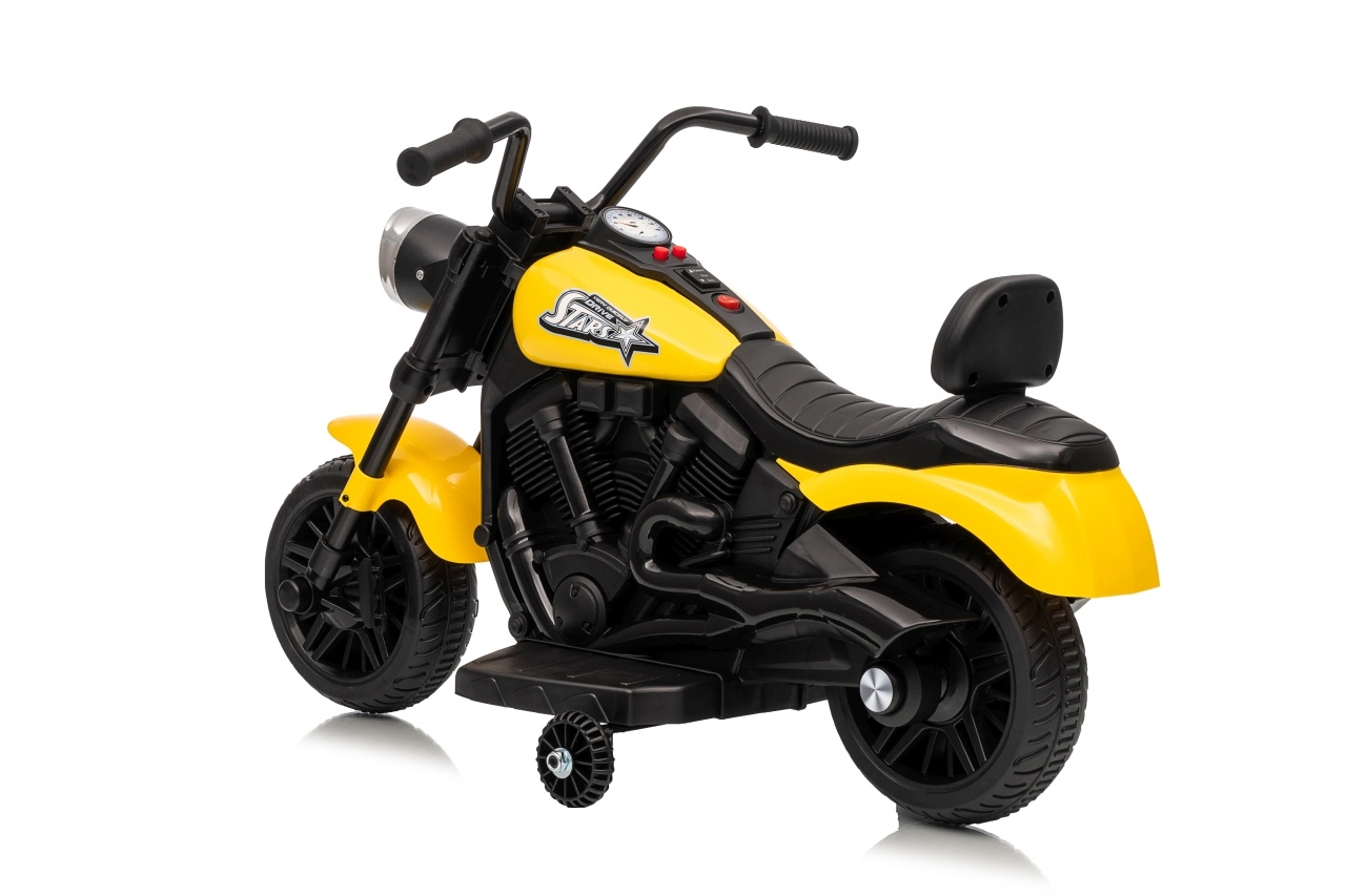 Stilski dječji električni motor STAR u žutoj boji donosi sigurnu zabavu za male vozače. Zahvaljujući sporom startu, stabilizacijskim bočnim kotačićima i prednjem LED svjetlu vožnja je udobna i sigurna. Motor nudi vožnju naprijed i natrag, jednostavno pokretanje gumbom i zvučni panel s melodijama za još veće uživanje u vožnji.