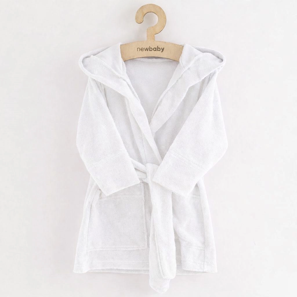 Razveselite dijete nakon kupanja udobnim i toplim ogrtačem NEW BABY od frotirnog pamuka. Nježan materijal je blag prema dječjoj koži, izvrsno upija i brzo grije. Praktična kapuljača štiti od hladnoće i pomaže osušiti kosu.